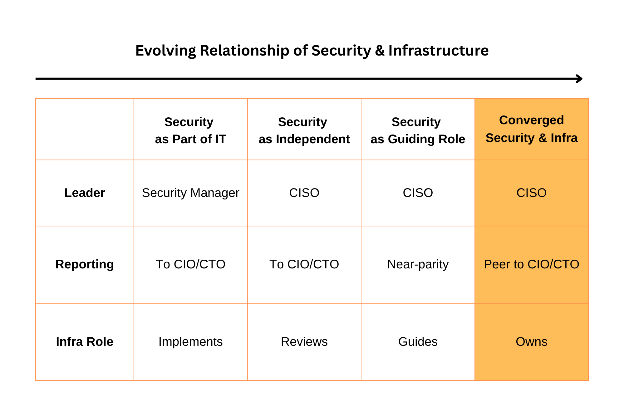 This is why it makes so much sense that at more and more companies, instead of security simply guiding infrastructure, it is starting to own it. At a growing number of organizations, infrastructure teams are starting to report into the CISO or operate under a security-led function that combines both domains.