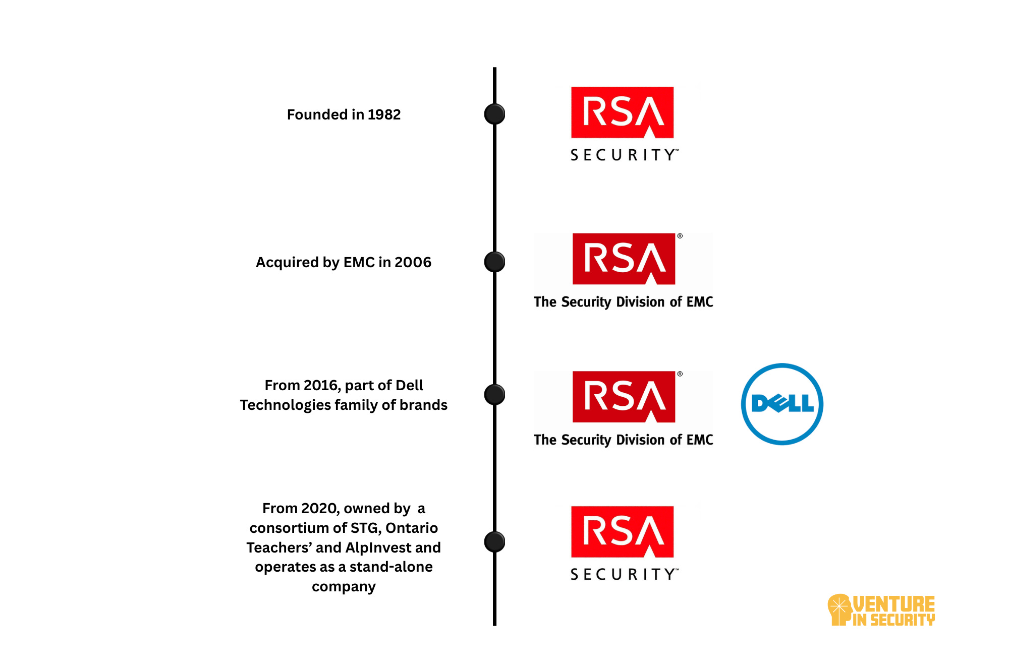 RSA’s trajectory shifted again in 2016 when EMC was acquired by Dell Technologies in the largest technology merger ever ($67 billion!). RSA became part of Dell’s family of companies, alongside VMware and other infrastructure businesses. While RSA remained a respected name, it operated within a much larger corporate structure where security was only one part of a broader infrastructure strategy. That, however, didn’t last long as in 2020, RSA was spun out of Dell and acquired by Symphony Technology Group (STG), returning to independent ownership. This marked a symbolic full circle for a company that had helped define the cybersecurity industry decades earlier.