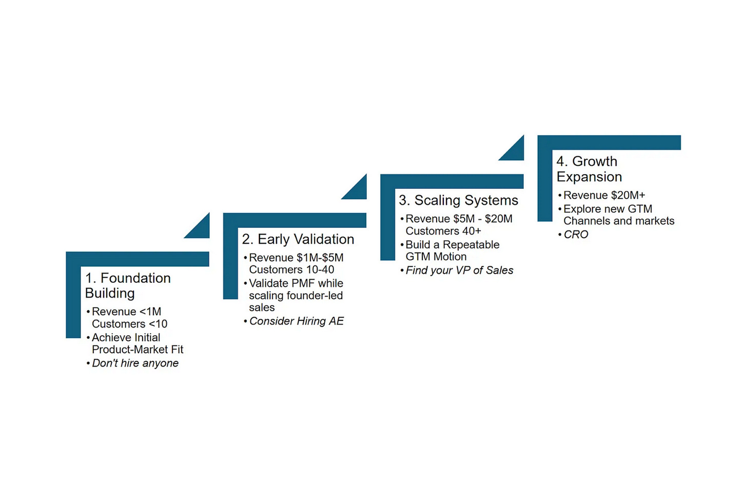 I honestly don’t think there’s barely any difference between Stage 1 and Stage 2. Yes, you’ve made progress. You’ve closed more deals, maybe even doubled your revenue. Congratulations! $1M to $5M is extremely hard and many don’t ever make it. But here’s where founders make a critical mistake: they think hitting a few $M means they can hand over the sales motion.